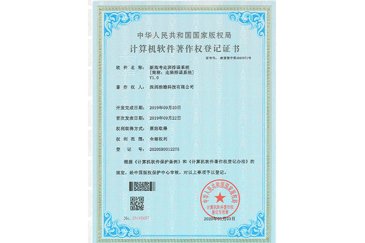 新高考走班牌课系统V1.0(简称:走班牌课系统)