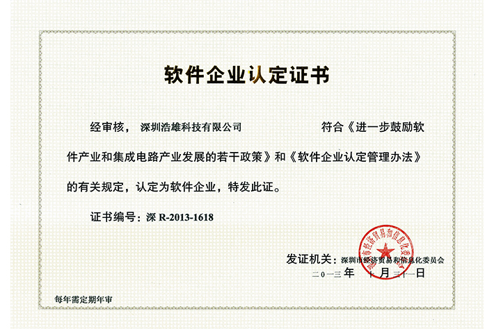软件企业认定证书